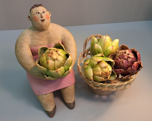 Take an artichoke to be artistic and ‘chok’.